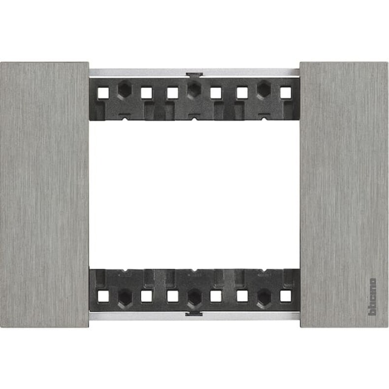 Рамка на 3 модуля Итальянский стандарт в сборе с суппортом и монтажной коробкой. Цвет.Сталь Bticino Living Now