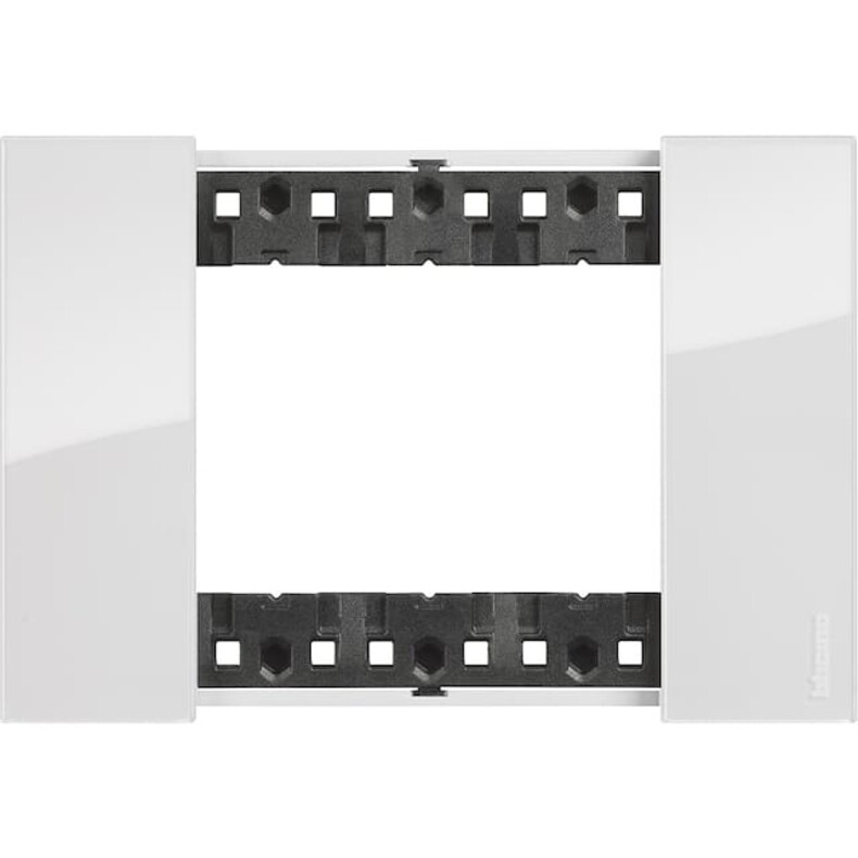 Рамка на 3 модуля Итальянский стандарт в сборе с суппортом и монтажной короб -кой . Цвет.Лед Bticino Living Now