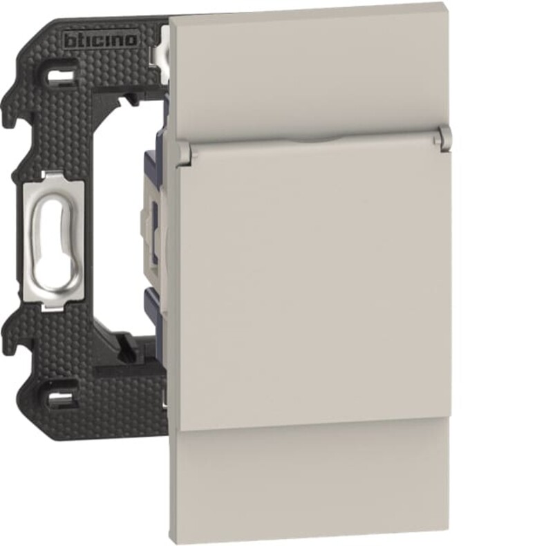 Розетка электрическая 2К+З 16А с крышкой автоматические клеммы 2 модуля немецкий стандарт. Цвет песочный. Bticino Living Now