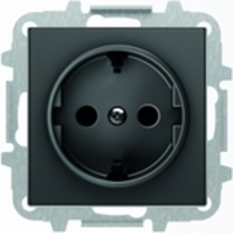 Розетка с заземлением со шторками с винтовыми клеммами ABB Sky черный бархат