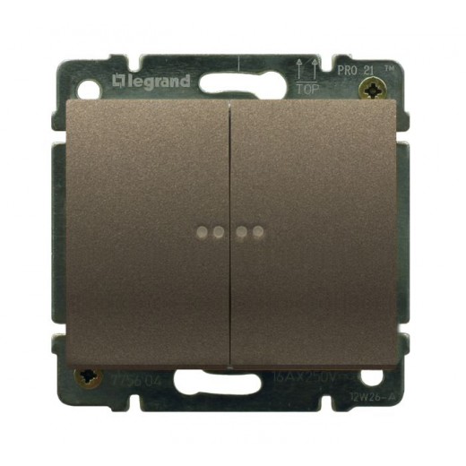 Выключатель двухклавишный проходной с подсветкой Legrand Galea Life темная бронза