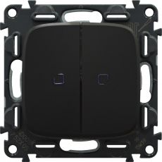 Выключатель двухклавишный проходной с подсветкой Legrand Valena Allure матовый черный